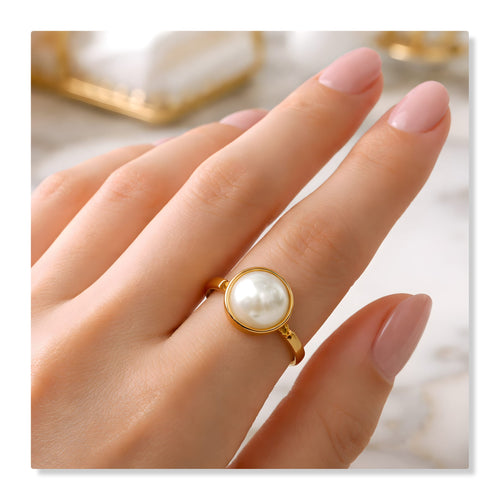 Anel com pérola barroca, banhado a ouro, ajustável