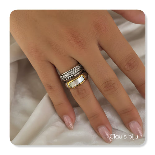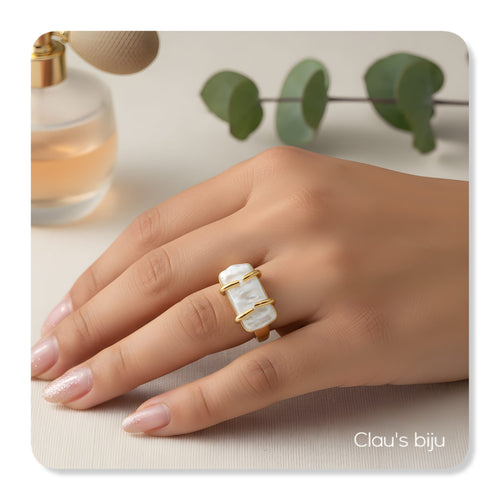 Anel com pérola barroca, banhado a ouro de 18 quilates, ajustável